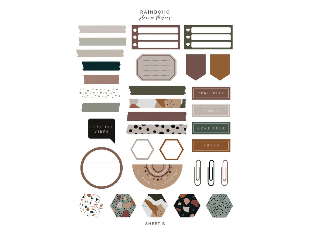 Exprimez-vous, soyez créatif et rendez votre agenda véritablement unique avec les Autocollants pour agenda RAINBOHO. Parfait pour les étudiants, les professionnels et toute personne aimant garder sa vie bien organisée et visuellement inspirante. :)