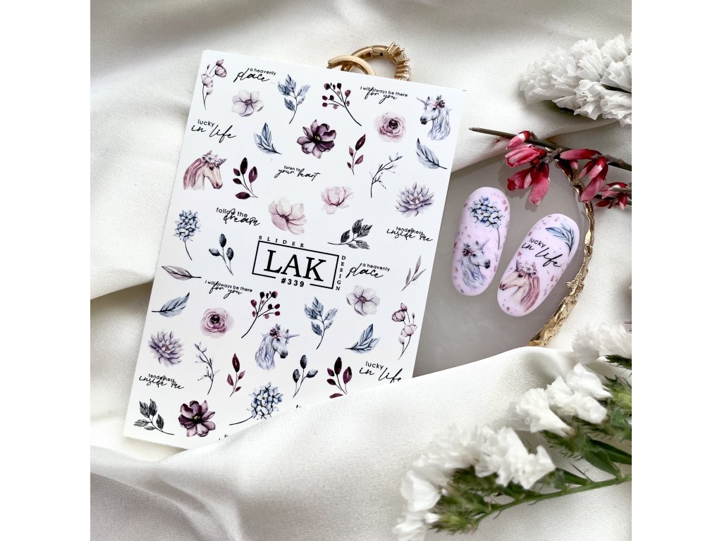 Découvrez le charme et l'élégance des décalcomanies LAK SLIDER avec notre modèle #339. Ces autocollants pour ongles, d'une finesse exceptionnelle, sont conçus pour se fondre parfaitement à la surface de l'ongle, offrant un fini lisse et sans imperfection.